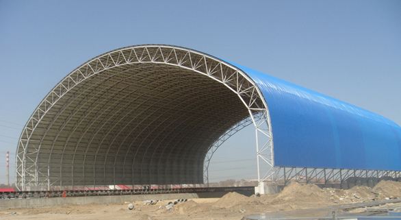 封閉式儲(chǔ)煤場(chǎng)有三種可選方案,全封閉儲(chǔ)煤棚網(wǎng)架結(jié)構(gòu)科學(xué)合理,20年來(lái)運(yùn)行可靠,滿足對(duì)煤炭存放要求,得到所有業(yè)主及環(huán)保部門(mén)認(rèn)可應(yīng)用;擋風(fēng)抑塵墻(網(wǎng))技術(shù)存在缺陷,環(huán)保驗(yàn)收難以通過(guò);混凝土筒倉(cāng)或鋼板倉(cāng)工程造價(jià)高過(guò)2-3倍,施工周期長(zhǎng),煤炭長(zhǎng)時(shí)間集中堆放,易燃系數(shù)高,不具備實(shí)用操作性。網(wǎng)架圓形結(jié)構(gòu)式儲(chǔ)煤棚成為了最佳選擇。